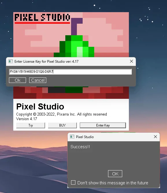 To start using Pixel Studio, you first need to install it on your computer. Then, when you open it, you will see a screen where you have to activate it. It will look like the picture below.