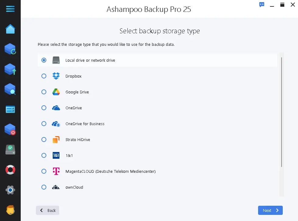 As for the storage options it offers, Ashampoo Backup Pro shines. The software accommodates a variety of storage options, including:
