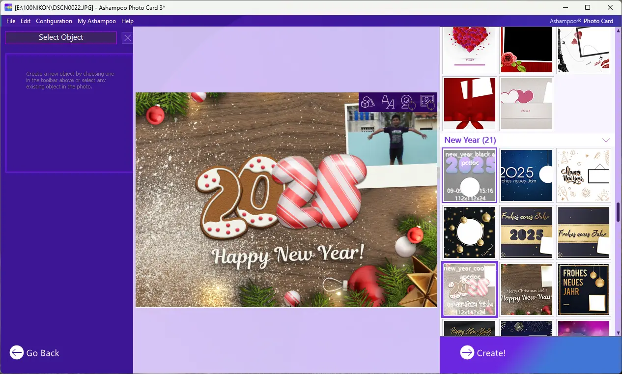 - An ideal format for any event: Be it a wedding, birthday, or ChristmasThere's a themed template for everything in Photo Cards 3. This, combined with the built-in clipart collection, gives you almost unlimited design possibilities.