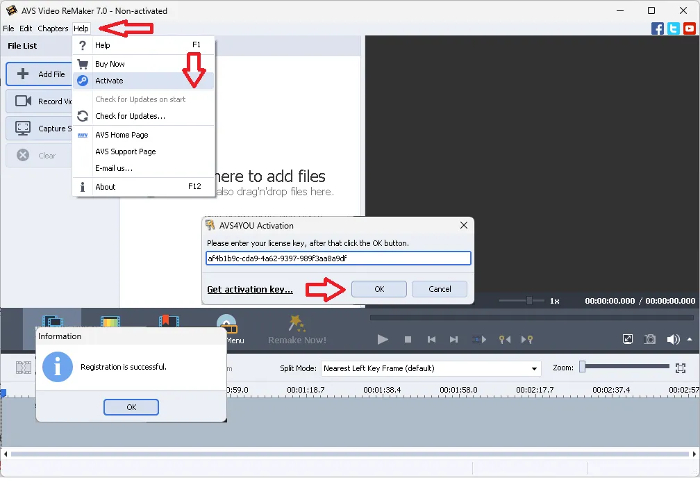 When you open the software for the first time, you will see an activation window with a pre-filled license code (similar to the screenshot below). Click 'OK' to unlock the full version.
