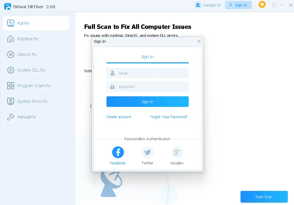 Run the program after installation. Click “Sign In” on the program’s main screen to create an account or log in with your existing social media credentials, including Facebook, Twitter (X), or Google+.