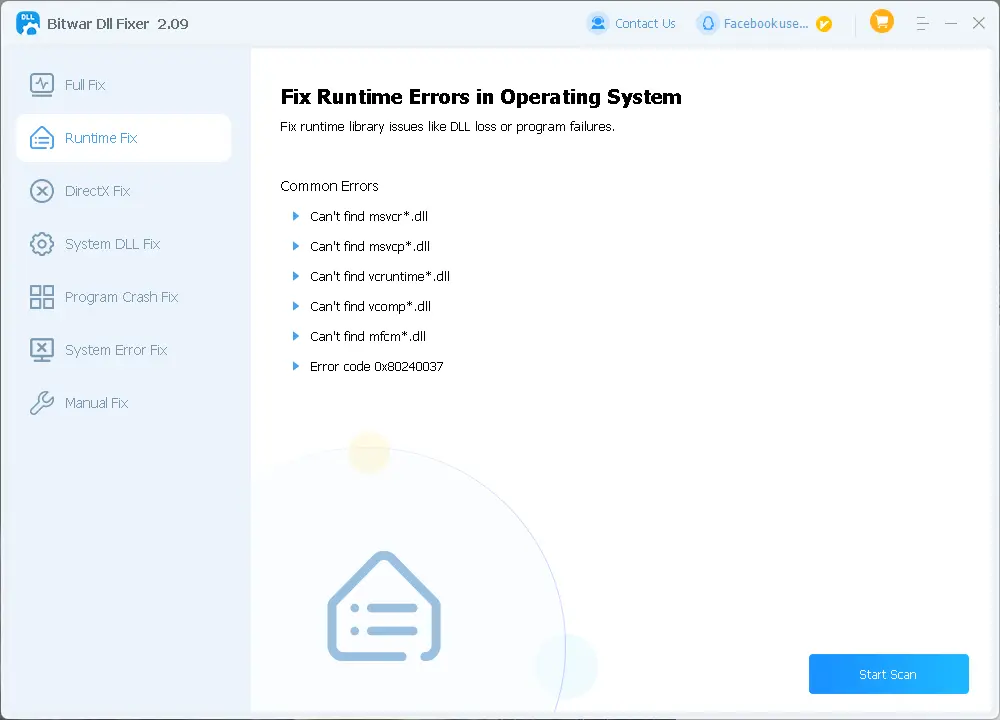 - Full Repair: Check for all system errors, including runtime and system DLL problems.