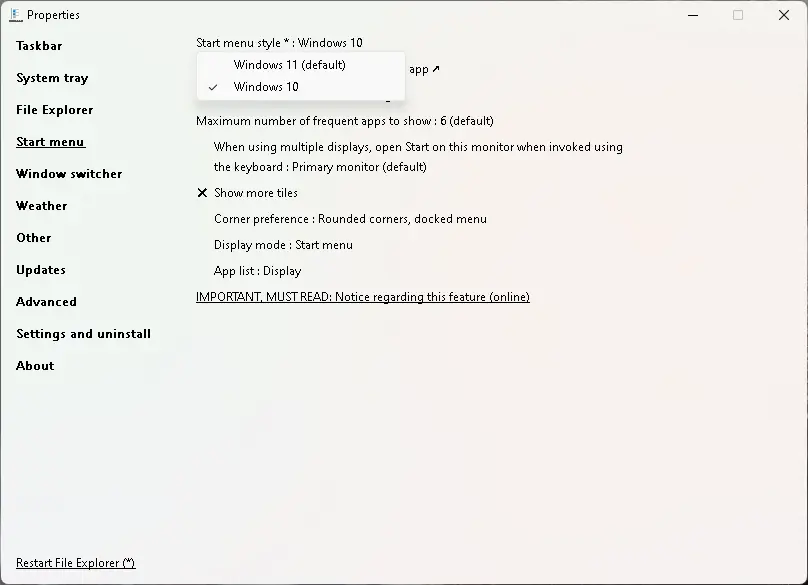 Change the appearance of the Start menu under the “Start Menu” area. Alt+Tab Go to the “Window Switcher” section to customize the window switcher style. Other setting options are also available for you to explore.
