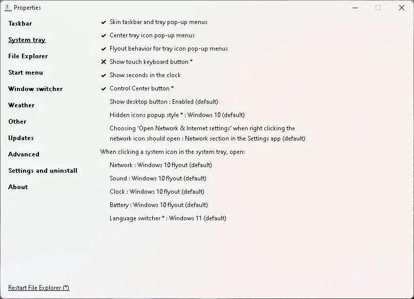 This program offers various window switcher styles to choose from, such as Windows NT and Windows 10. you can do this customize System tray options like Wi-Fi and keyboard layout flyout with this tool.