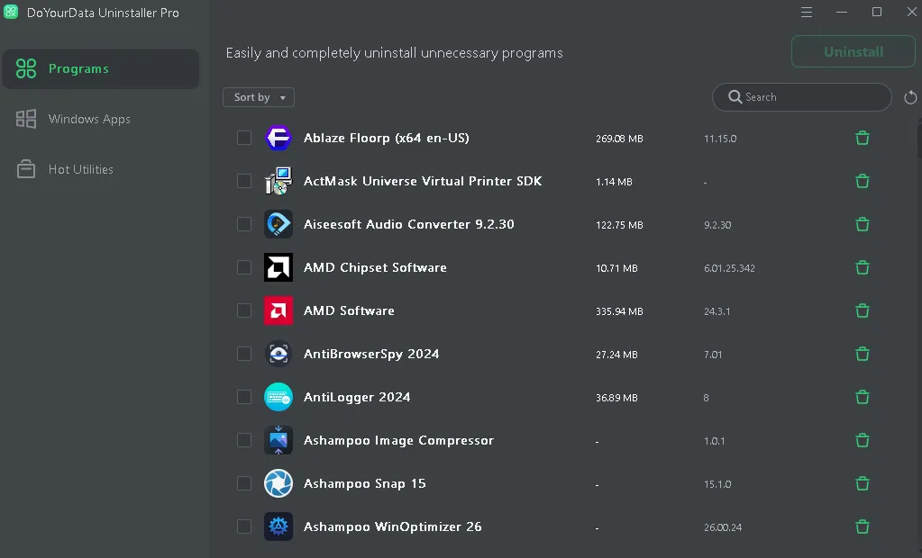 DoYourData Uninstaller Provides an easy and smart solution to completely uninstall programs, Windows apps and plug-ins on your computer.