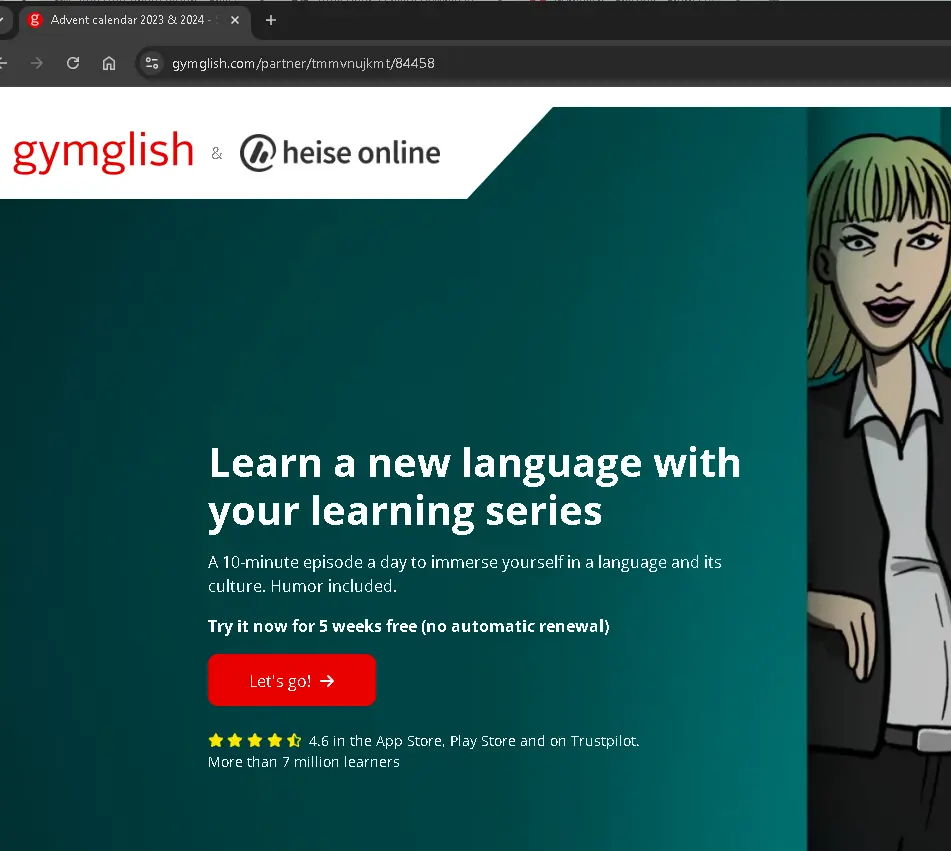 For a limited period, you can get GymGlish Premium Free for 5 WeeksThanks to Heise.de.