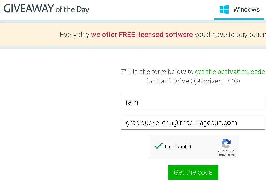 After entering your name and email address, press the “Get Free” button.