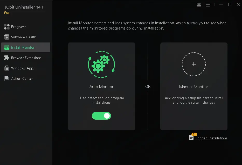 An innovative feature, Install Monitor records system changes that occur during program installation. This comprehensive tracking allows for a more thorough removal process when you choose to uninstall a program, considering all associated files and registry changes.