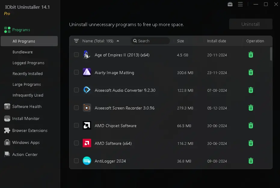 One solution to this widespread problem is the force uninstall function of IObit Uninstaller. To give your system a clean slate, this sophisticated tool can uninstall bundled apps and those that are difficult to uninstall.
