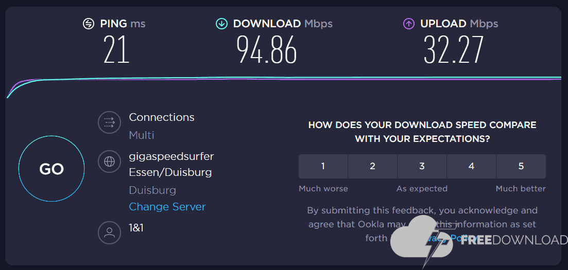 Connections to servers which are distant, on this case from Germany to the US, at all times undergo a bit in relation to ping. The obtain velocity dropped by one other 20 Mbit on this case, whereas the add velocity remained the identical once more.