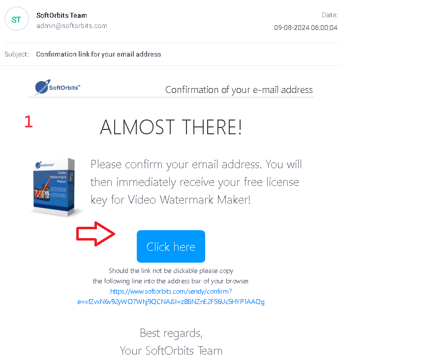 Click on “Click Here” or “Confirmation Link” in the email you just received. A new SoftOrbits webpage will open in a new window.