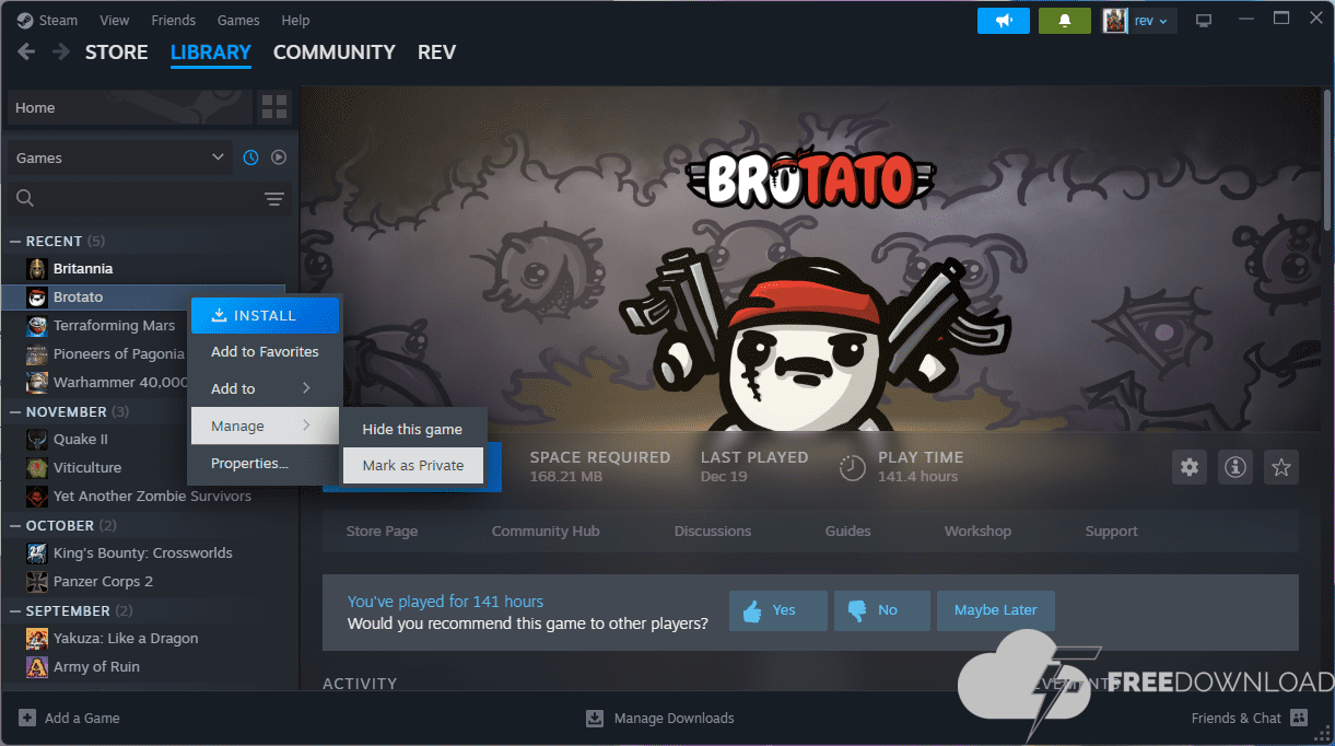 After they browse the checklist of video games, they will not discover personal video games within the checklist anymore. Sure, the screenshot above exhibits that I performed Brotato for over 140 hours. Disgrace on me..