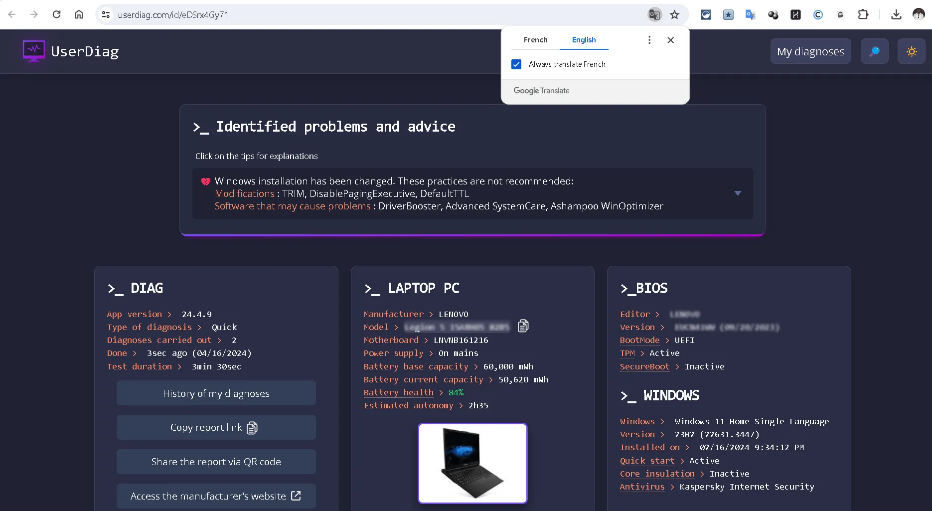 Although the developer’s web site is in French, there’s no want to fret! You possibly can simply navigate the UserDiag software as a result of its UI is obtainable in English. Additionally, the report is very easy to interpret with the help of the Google Translate extension.